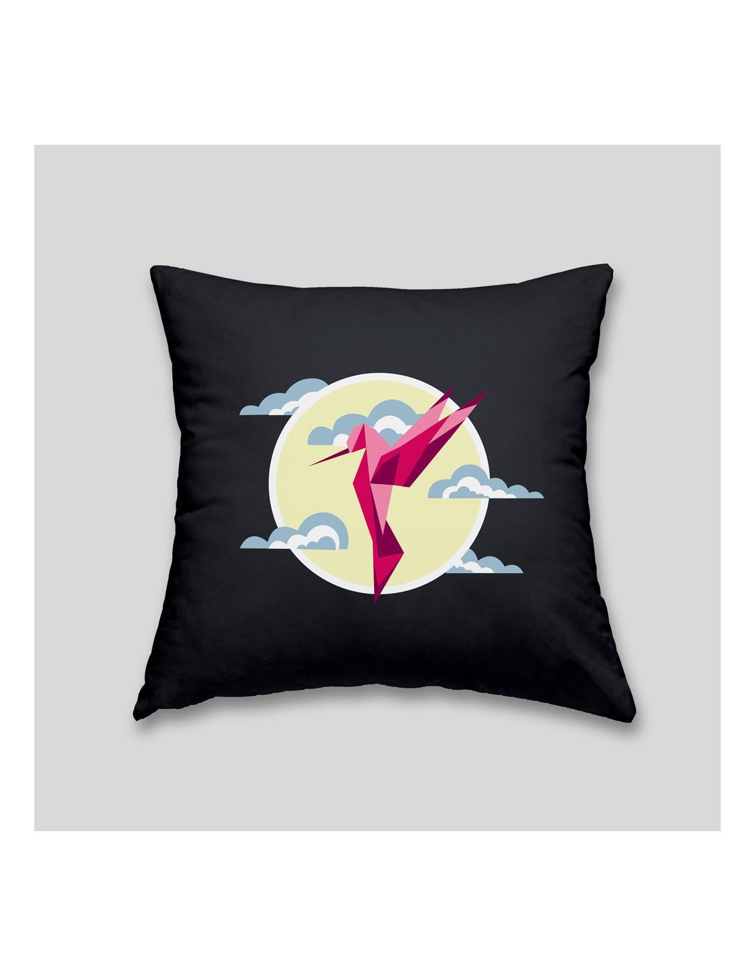 The hummingbird cushion will add a graphic and colorful touch to your sofa, armchair or bed. Create a modern and zen atmosphere that inspires relaxation. Cover 100% cotton, machine washable at 60° / Filling 100% hypoallergenic polyester.